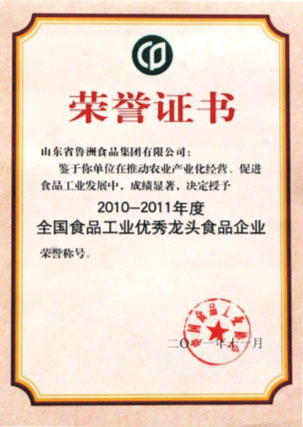 會上,集團被中國食品工業協會授予,“2010-2011年度全國食品工業優秀龍頭食品企業”,并頒發了榮譽證書和獎牌。